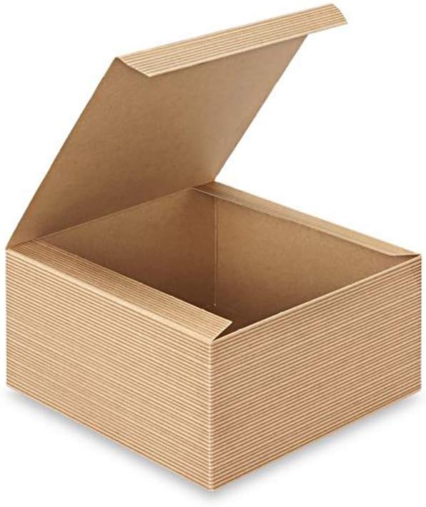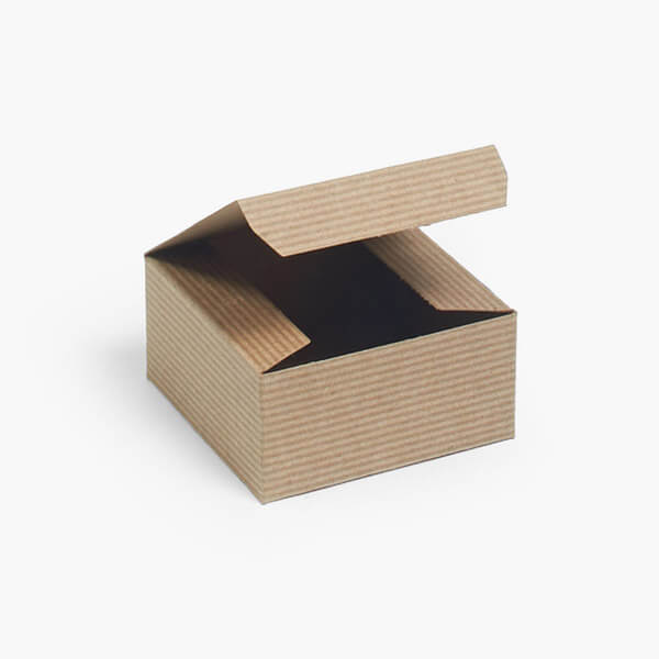 - Size: 4 x 4 x 2", Pinstripe kraft chipboard exterior and kraft interior